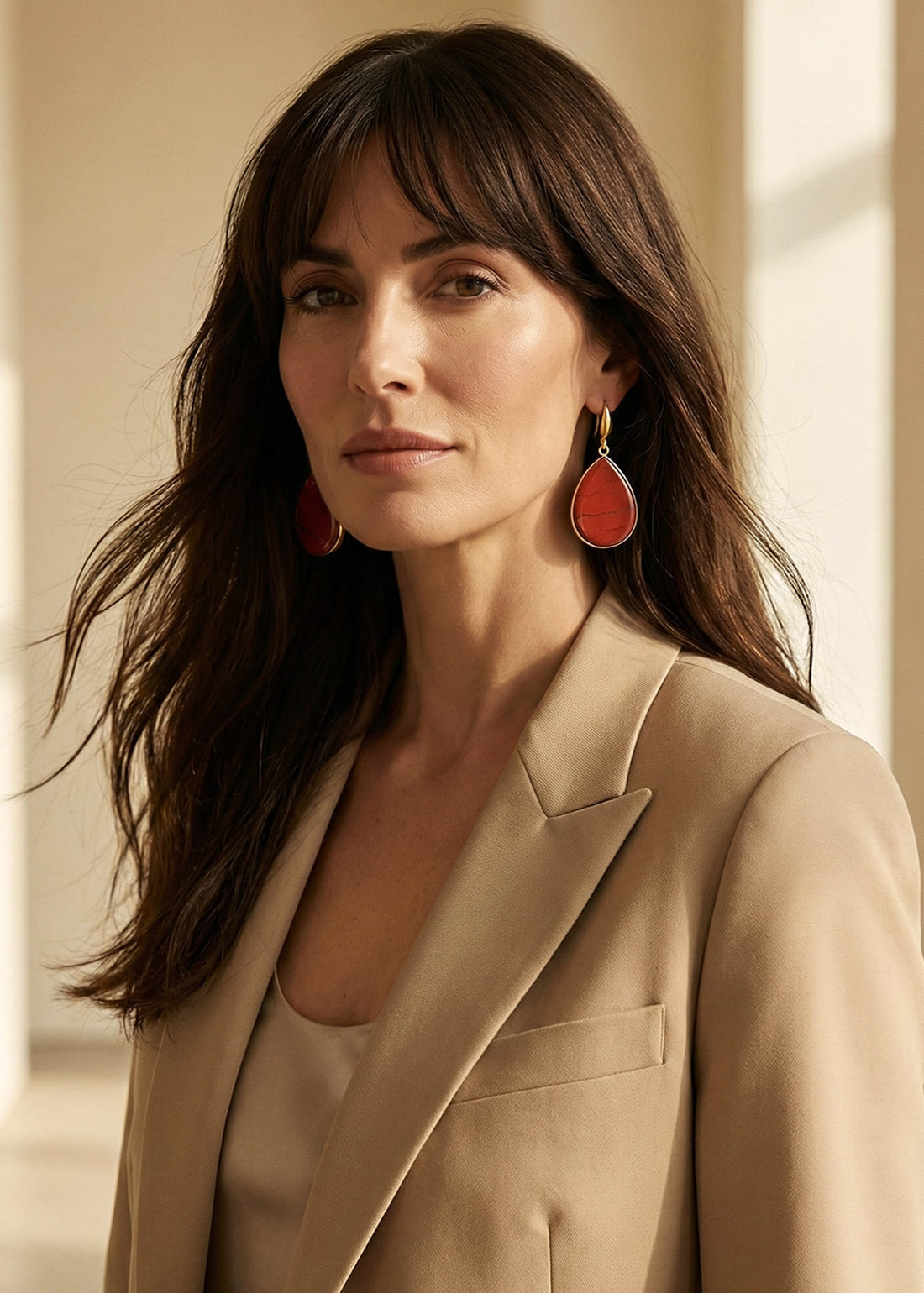 Cada par ha sido diseñado con intención y elaborado de forma artesanal, haciendo de cada pieza una creación única. No hay dos iguales, y eso es parte de su encanto. El contraste entre el dorado cálido y la piedra rojiza genera una armonía visual poderosa. Diseño propio, materiales naturales y acabado manual: un trío que da vida a joyas que cuentan historias. Pensados para quienes valoran lo auténtico, lo simbólico y el trabajo hecho con el corazón.